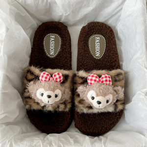 毛毛棉拖鞋女新款秋冬季居家室内防滑保暖家用豹纹猴休闲女士棉拖