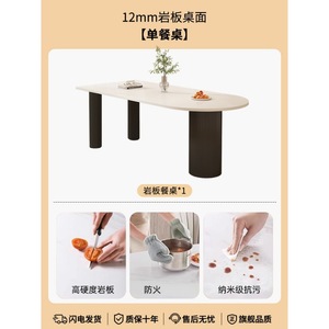 岩板餐桌岛台一体设计师款新款吃饭桌子家用法式奶油风餐桌椅组合