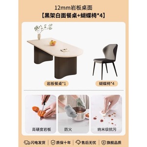 【纯白岩板】花生腿单桌+蝴蝶椅子*4