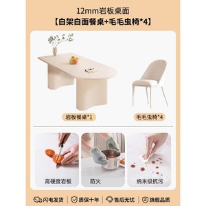 【白色岩板】单桌+毛毛虫椅*4