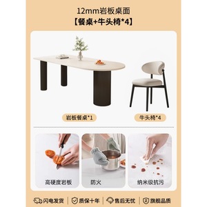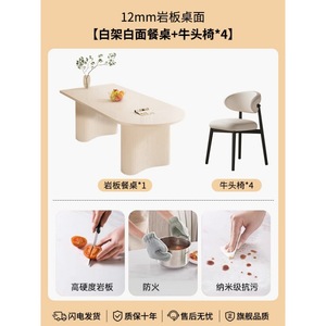 【纯白岩板】花生腿单桌+牛头椅子*4