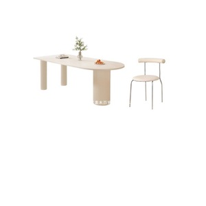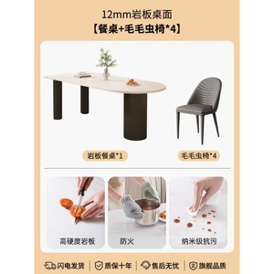 【纯白岩板】花生腿单桌+毛毛虫椅子*4
