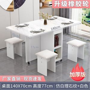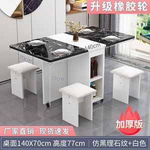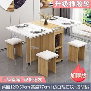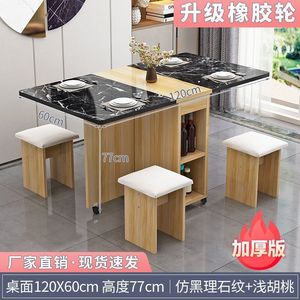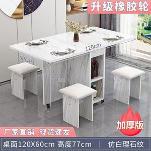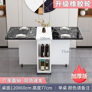 可移动岩板折叠餐桌椅家用小户型吃饭桌子长方形多功能靠墙折叠桌