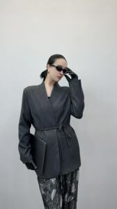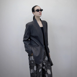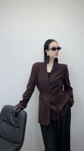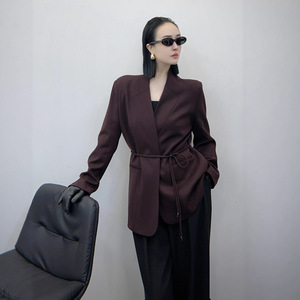 篙端气质垫肩西装外套中长款2025秋季新款时尚收腰显瘦西服不退换
