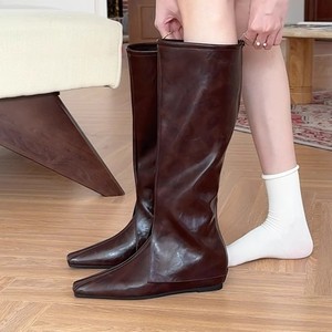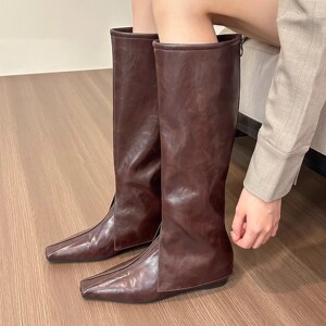 爆显瘦!2025秋冬新款内增高方头两穿复古时尚后拉链长靴裤腿靴