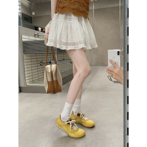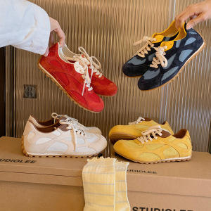 牛皮~葡萄妈平底内增高3.5cm可爱芒果头系带休闲风运动鞋女德训鞋