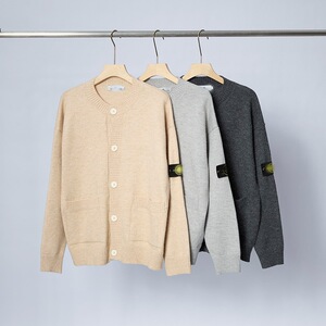 跨境STONE石头美式秋冬圆领落肩长袖北极绒开衫毛衣外套男女款ius