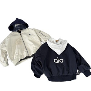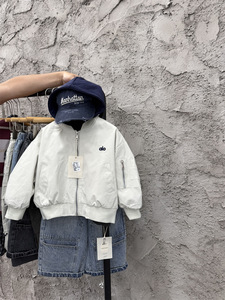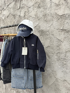 儿童秋冬美式假两件连帽外套男童女童撞色防水刺绣字母飞行服夹克