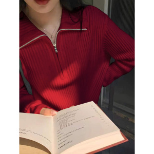 秋冬新款拉链毛衣针织衫女宽松外穿打底洋气上衣设计感小众
