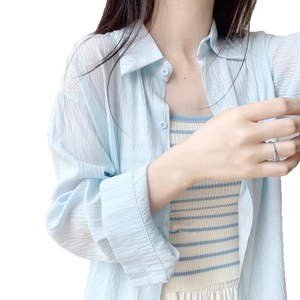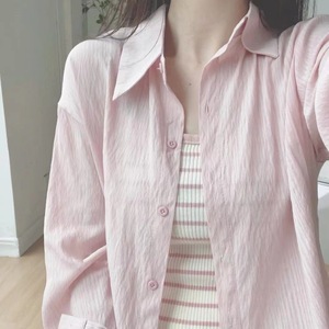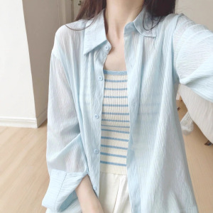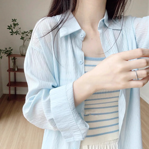 原版天丝衬衫薄款韩版女小众高级感宽松衬衣防晒开衫空调衫中长款