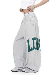 美式街头侧边字母印花运动卫裤休闲宽松慵懒百搭松紧腰拖地长裤潮
