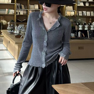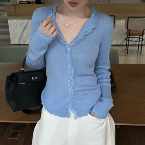 2025早秋新款韩版宽松显瘦V领长袖针织开衫女百搭上衣潮