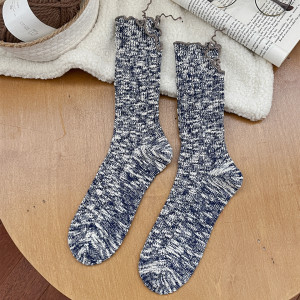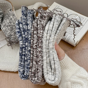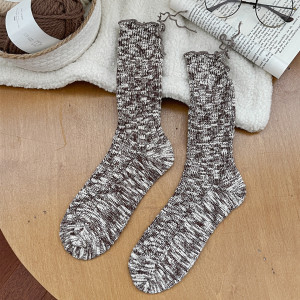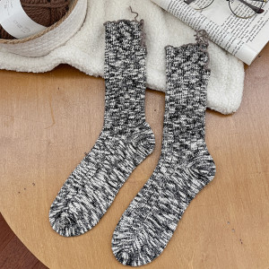 新品开叉堆堆袜女甜酷中筒袜个性韩版秋冬纯棉复古粗线松口长袜子