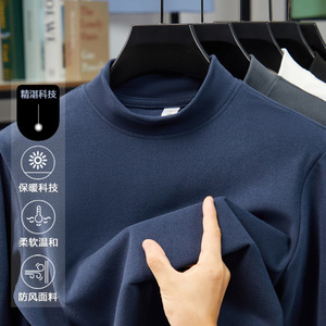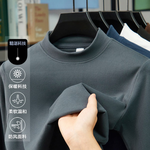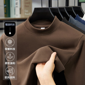 跨境高端双面德绒半高领打底时尚男士卫衣长袖t恤秋冬发热保暖衣