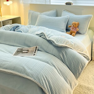 冬季牛奶绒四件套A类母婴级加厚保暖防静电纯色雕花绒法兰绒被套
