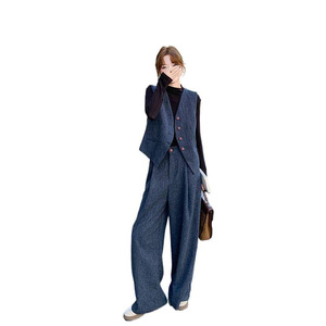 一整套穿搭叠穿马甲套装女秋季新款百搭高级感气质高腰阔腿长裤