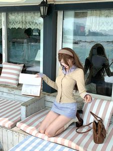 韩系设计感套装 秋季新款假两件长袖上衣+条纹半身短裙两件套
