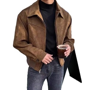麂皮绒双层夹克美式复古外套男秋冬棕咖美拉德穿搭短款百搭夹克