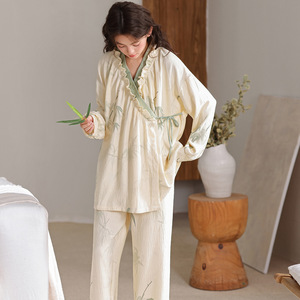 2025新款云朵棉纱布睡衣春秋款长袖和服宽松可外穿家居服国风套装