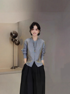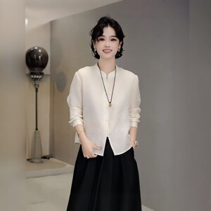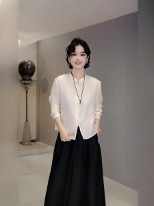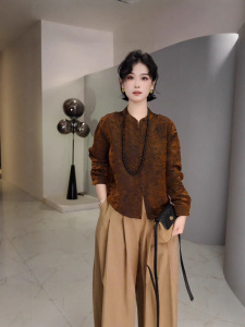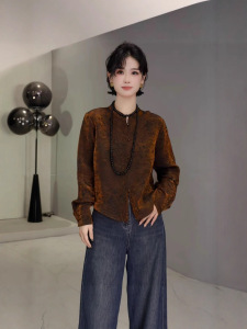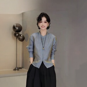 2025早秋复古新中式小立领单排扣长袖衬衫女暗纹提花气质百搭上衣