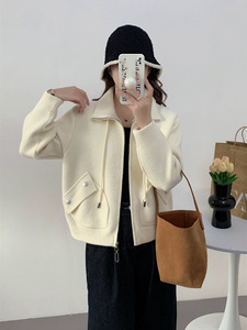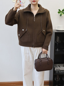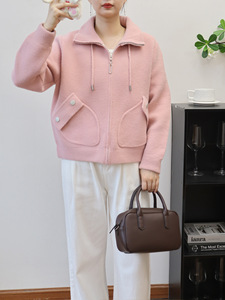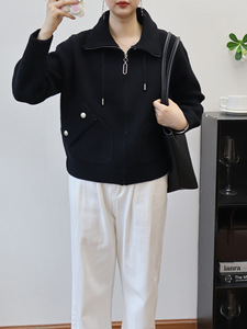 拉链针织双面呢开衫2025秋冬新款韩版宽松休闲百搭纯色毛衣外套女