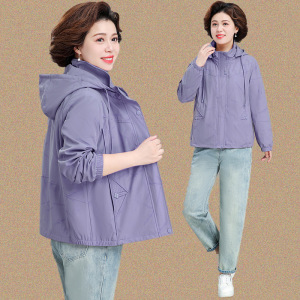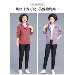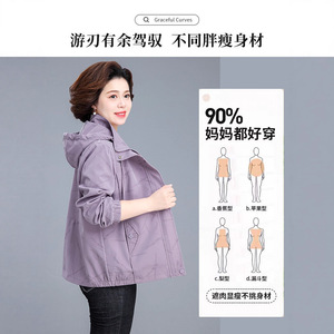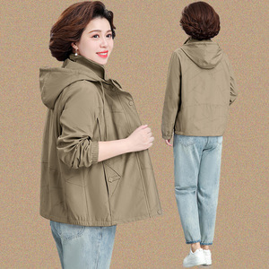 中年妈妈风衣外套2025年春秋季新款洋气中老年女春秋连帽休闲上衣