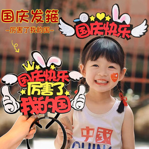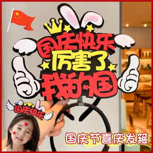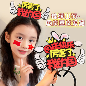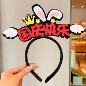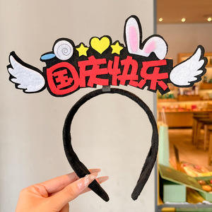儿童中国红发箍国庆节头饰创意文字拍照表演道具女孩头箍学生发饰