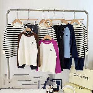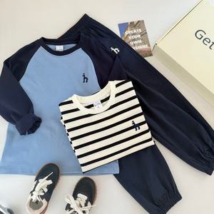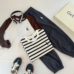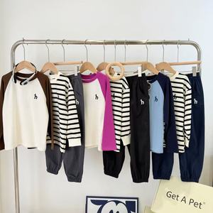 160804.青岛仓中大童秋季拼接插肩袖刺绣条纹长袖运动长裤三件套