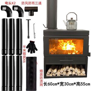 燃木真火壁炉【观火取暖烧水】-600m壁炉+黑色管道m