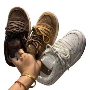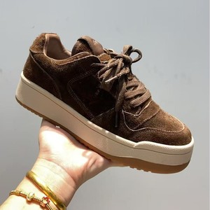前言范2025早秋棕色系板鞋~软糯厚底百搭真皮休闲运动板鞋女德训