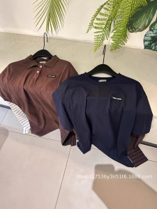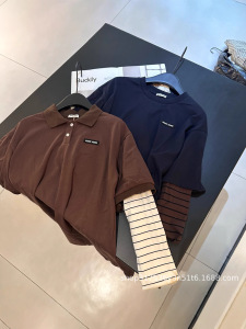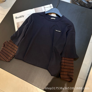 25早秋新款深圳南油假两件polo宽松条纹长袖T恤宽松