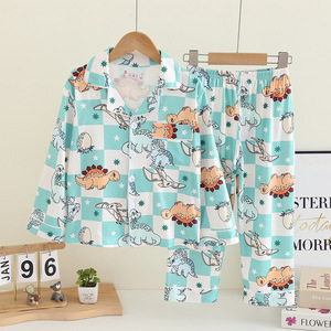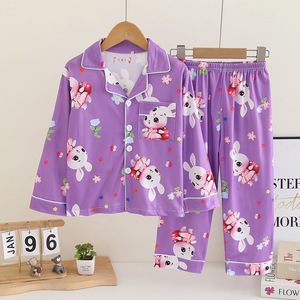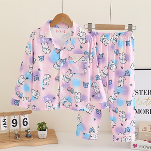 批发儿童睡衣春秋季薄款男童套装女孩公主宝宝卡通开衫长袖家居服