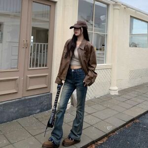 2025秋季新款美式咖色皮衣外套女气质夹克美拉德穿搭黑色机车上衣