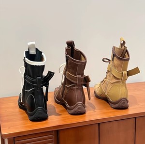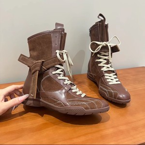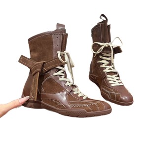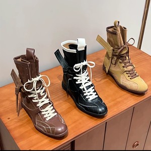 【现货速发】内增高马丁靴女2025新款拳击靴磨砂皮系带短靴德训靴