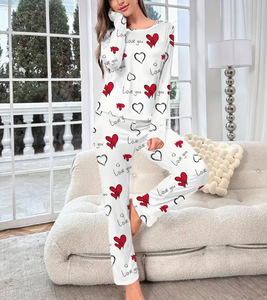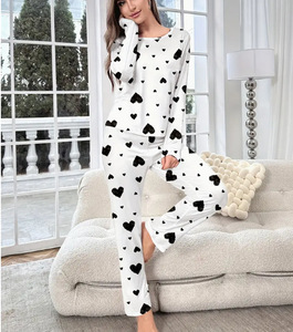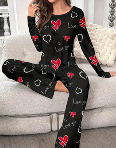 欧美跨境热销家居服坑条爱心吊带背心睡衣女可外穿长裤两件套套装