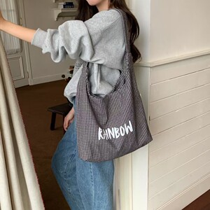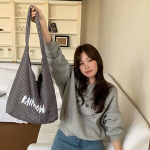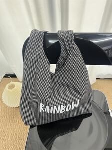 新款格纹字母刺绣单肩包大容量帆布托特包时尚百搭手提包电脑包