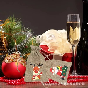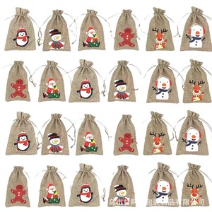 2025新款圣诞仿粗麻布抽绳束口礼物袋套装平安夜派对儿童糖果收纳