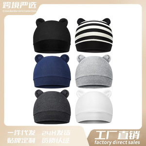 跨境亚马逊欧美新生儿0-12个月婴儿小熊耳朵针织胎帽柔软舒适透气