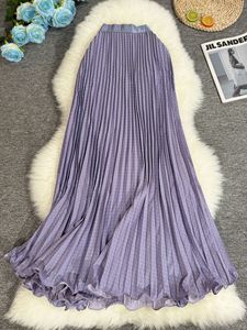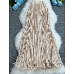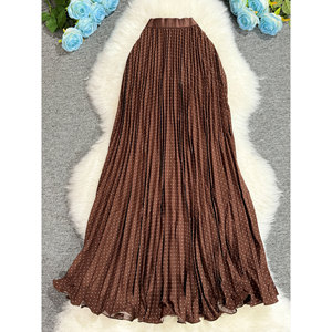 外贸压褶波点半身裙经典百搭高腰显瘦波浪裙边气质a字长款裙子女