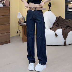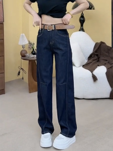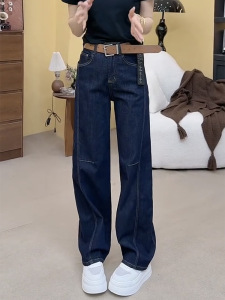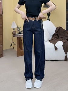2025早秋新款牛仔裤女大码弹力显瘦窄版直筒拖地裤遮肉减龄阔腿裤