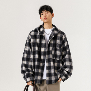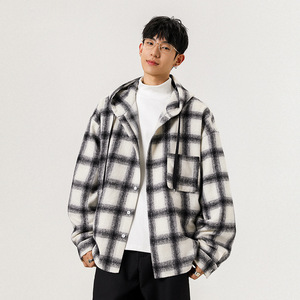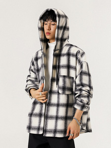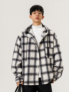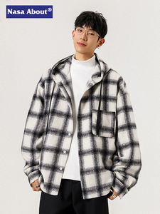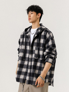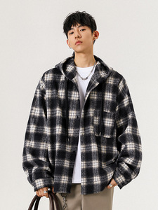 NASA美式复古格纹连帽衬衣男春秋季2025新款宽松休闲长袖衬衫外套