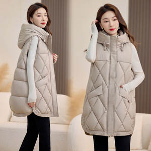 中年加大码女装妈妈棉马甲冬季女2025年新款休闲轻薄保暖连帽上衣