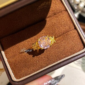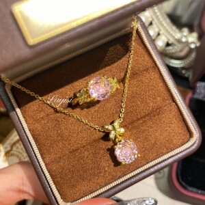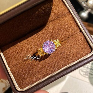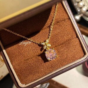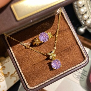 八角千禧玫瑰切帕拉伊巴项链女轻奢高碳钻蝴蝶戒指紫钻黄金色套装