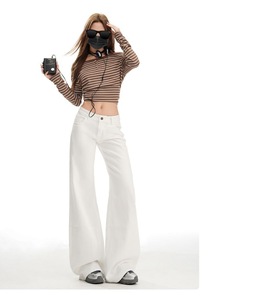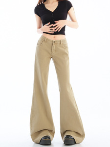 卡其色微喇牛仔裤女款小个子不贴腿牛仔微喇裤女低腰喇叭裤子女款