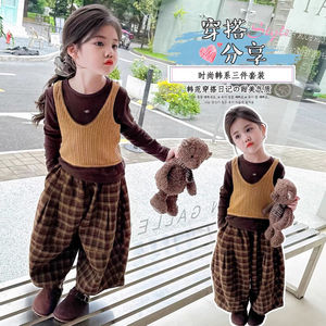 女童时尚套装2025新款小童上衣棉马甲背心格子裤春秋季女宝宝