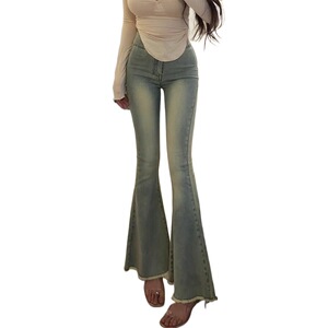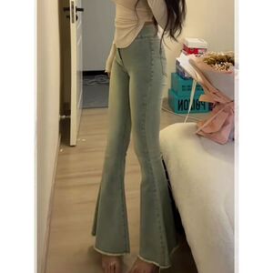 辣妹鱼尾喇叭新款小个子高腰牛仔裤显瘦弹力拖地长裤子微喇牛仔裤