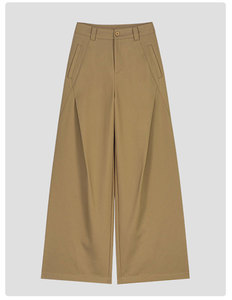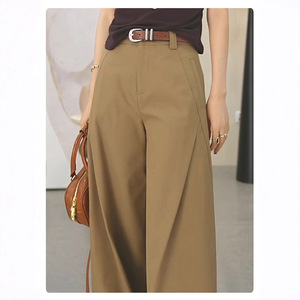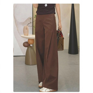 复古棕色阔腿裤女早秋季休闲裤子2025新款春秋高腰抗皱直筒风笛裤
