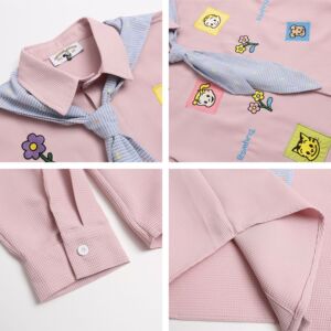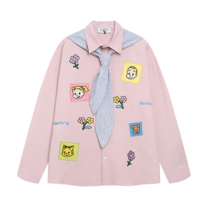秋季美式复古可爱萌宠刺绣披肩长袖衬衫男宽松休闲情侣衬衣外套