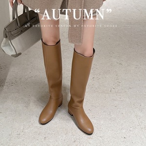 真皮法式圆头平底及膝宽筒显瘦堆堆靴微胖高筒骑士靴棕色长筒靴女