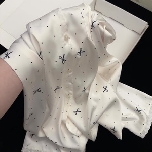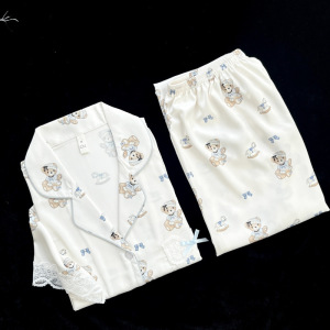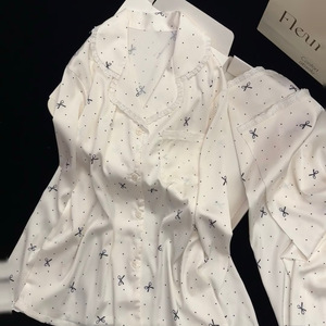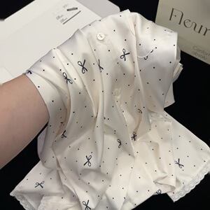 【奶油蝴蝶结】仿醋酸面料蕾丝蝴蝶结芭蕾风法式睡衣女冰丝家居服